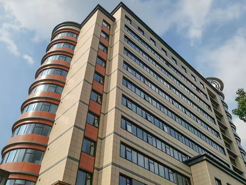 項目位于上海新村路,建筑面積近10萬平方米,為三級甲等綜合性醫(yī)院。 醫(yī)院外立面使用協(xié)進(jìn)純色陶瓷薄板鋪貼。 產(chǎn)品色澤均勻細(xì)膩,效果整潔大氣。