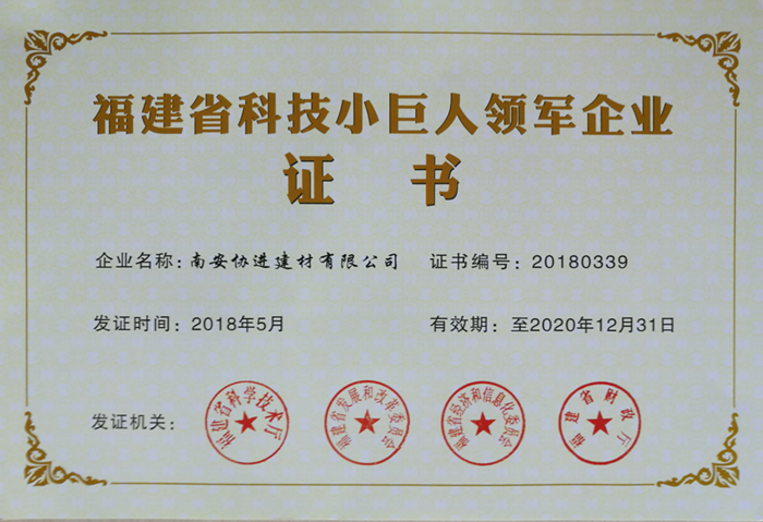 近日,福建省科技廳、福建省發(fā)改委、福建省經(jīng)信委、福建省財政廳聯(lián)合印發(fā)《關(guān)于公布2018年省科技小巨人領(lǐng)軍企業(yè)新增培育名單等情況的通知》(閩科企金[2018]17號),南安協(xié)進(jìn)建材有限公司等522家企業(yè)符合條件,列入“科技小巨人領(lǐng)軍企業(yè)培育發(fā)展庫”。