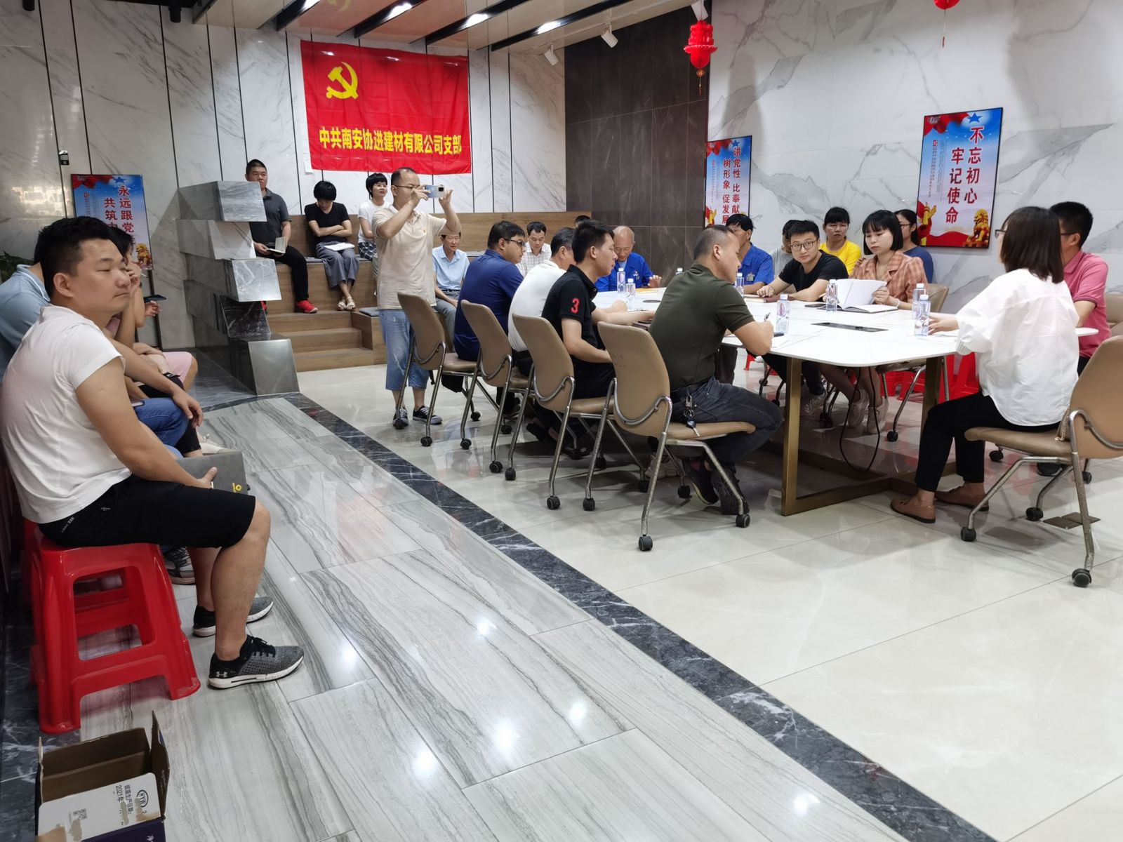 5月27日上午九點,南安市“一刻鐘”微黨課進企業(yè)進車間在協(xié)進營銷中心宣講。