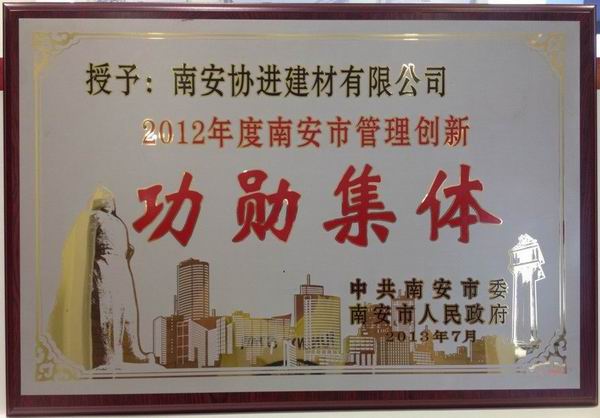 本報(bào)訊:8月19日,南安市創(chuàng)新轉(zhuǎn)型暨金融改革工作推進(jìn)會在南安人民會堂隆重召開,泉州市市長鄭新聰,南安市委書記黃南康、市長王春金等兩級領(lǐng)導(dǎo),以及南安市工商界、金融界代表200余人參加會議。會上表彰了2012年度南安市創(chuàng)新獎獲獎單位和個人,部署加快創(chuàng)新轉(zhuǎn)型、推進(jìn)金融服務(wù)實(shí)體經(jīng)濟(jì)綜合改革工作,進(jìn)一步激發(fā)全市的創(chuàng)業(yè)創(chuàng)新熱情,推動行業(yè)、企業(yè)可持續(xù)健康發(fā)展。南安協(xié)進(jìn)建材有限公司憑借多年來在行業(yè)中的創(chuàng)新工作被授予“2012年度南安市管理創(chuàng)新功勛集體”獎,公司總經(jīng)理王少華應(yīng)邀參加會議,并代表協(xié)進(jìn)公司上臺接受表彰。